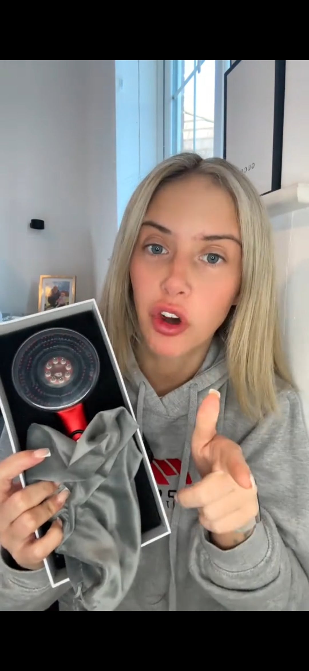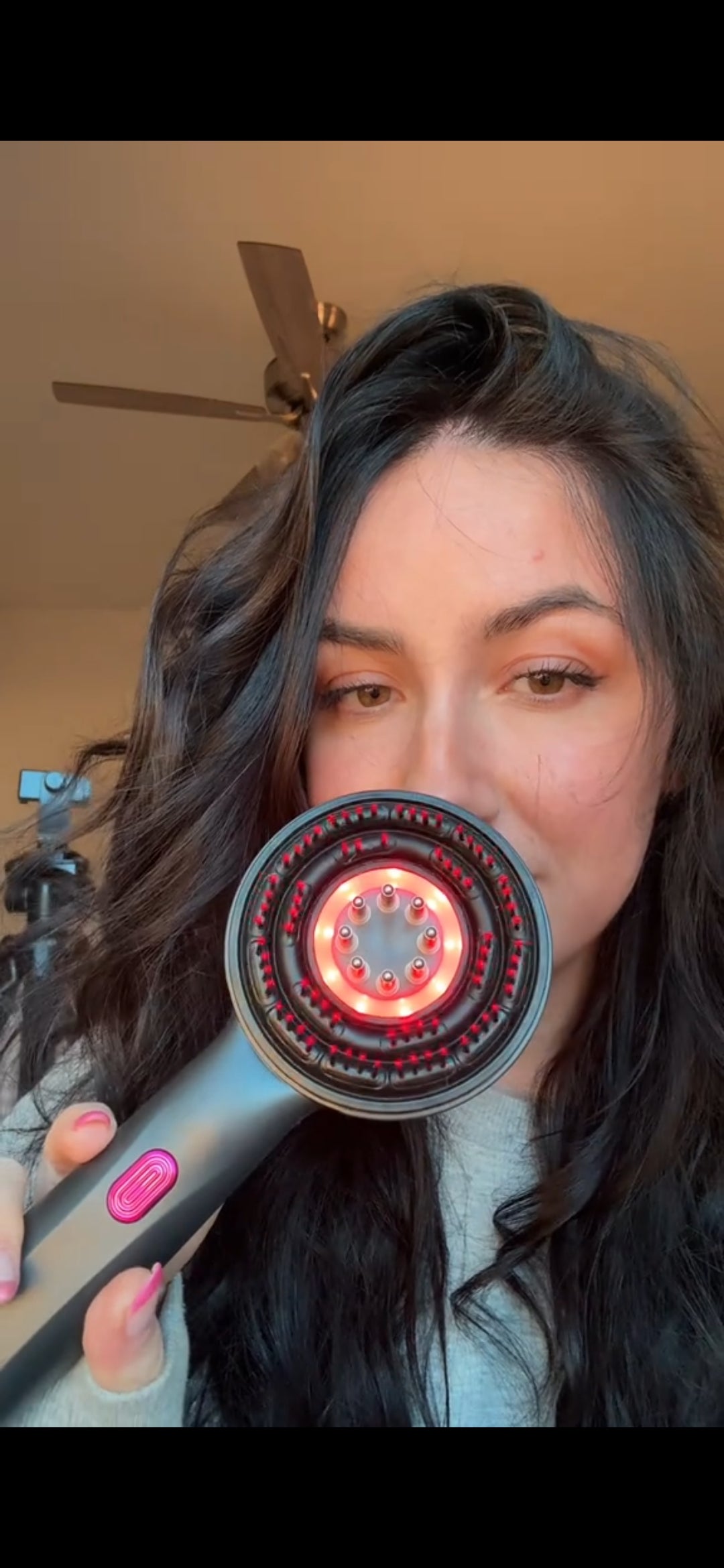 2️⃣ Enciende Sozuna y masajea suavemente el cuero cabelludo durante 5–10 minutos