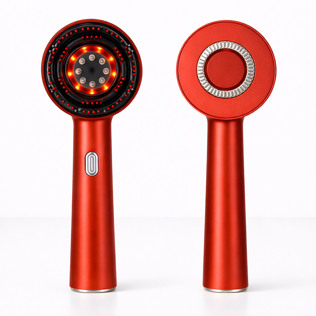 Esta luz acompaña la estimulación del cuero cabelludo y favorece la regeneración de los folículos pilosos, ayudando a mantener un entorno capilar saludable con el uso regular.